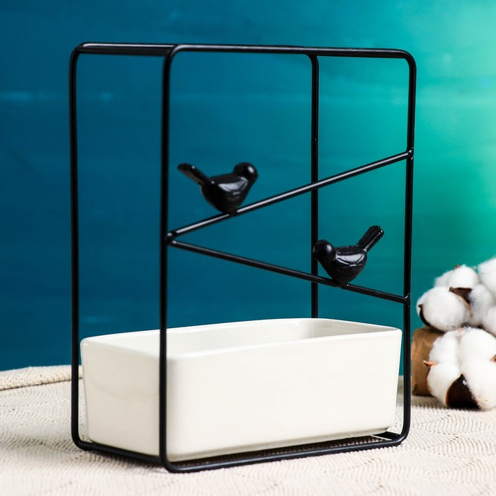 Горшок на подставке "Птички" черный, 21х17х8см