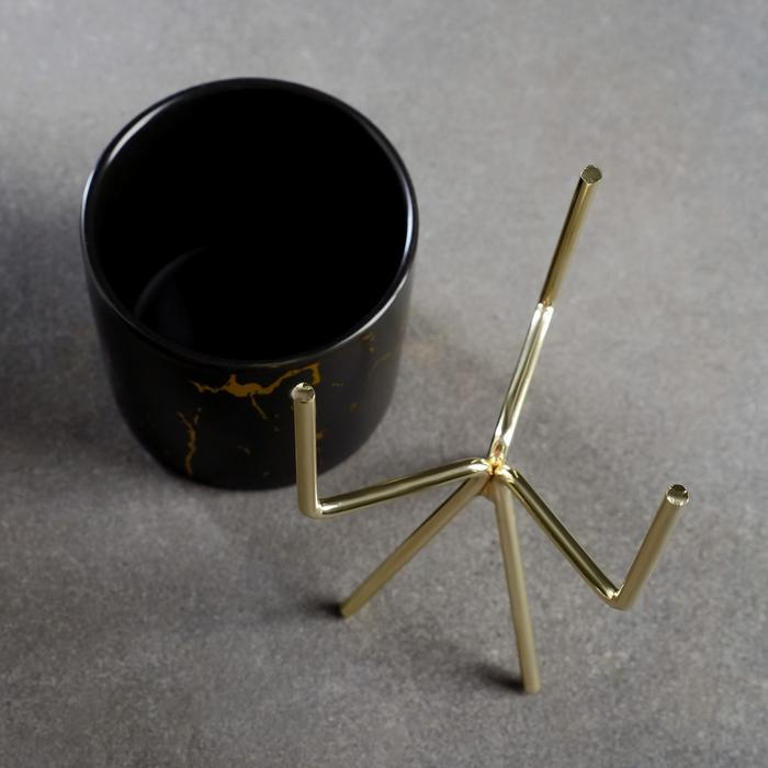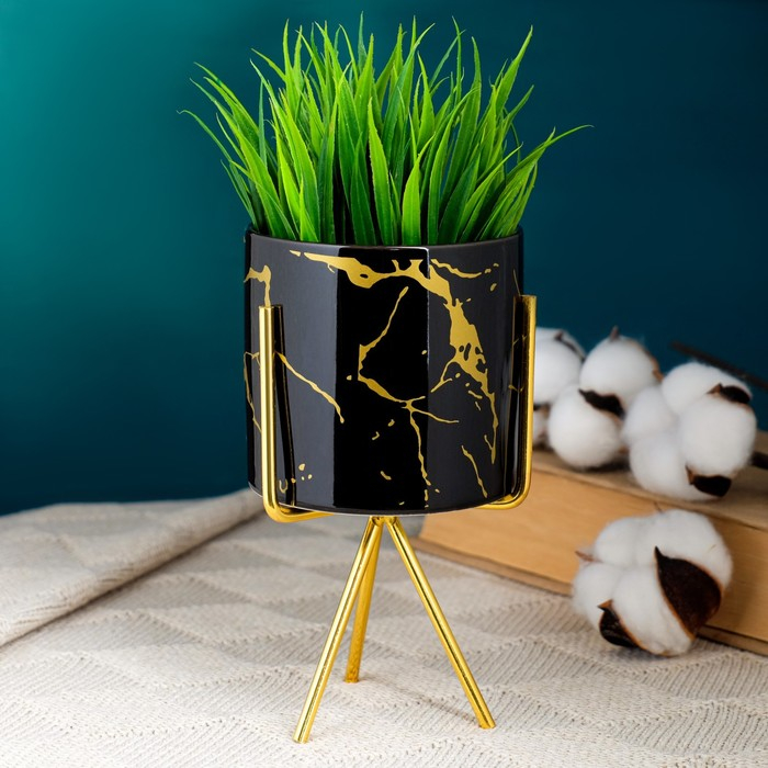 Горшок на подставке "Цилиндр" мрамор, на золотой подставке, 15х8х8см