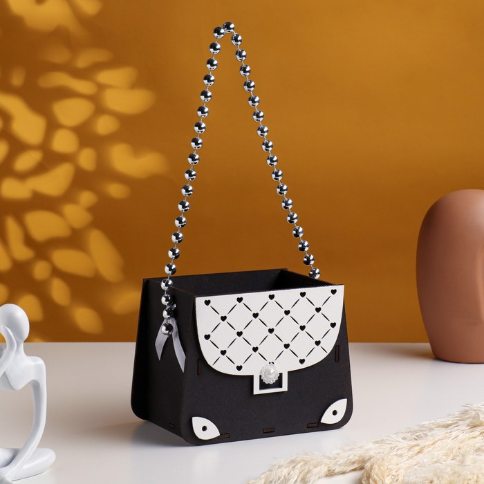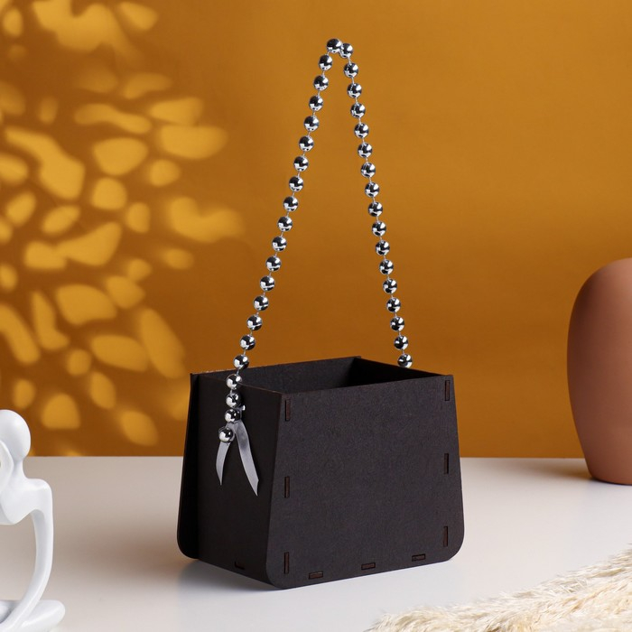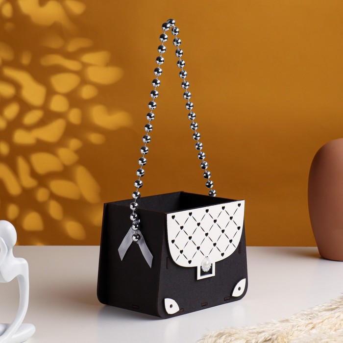 Кашпо деревянное 15,5х10х12 см "Сумочка", эбеновое дерево-белый