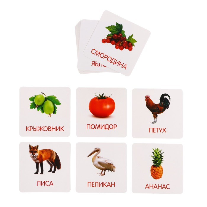 - Разложите на столе карточки картинками вверх, а карточки-категории перемешайте и поместите рядом рубашкой вверх.