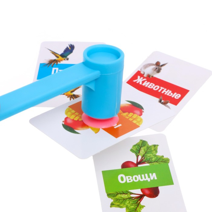 - Участники начинают стучать молоточками по карточкам с картинками. Нужно найти карточки с предметами, относящимися к этой категории.