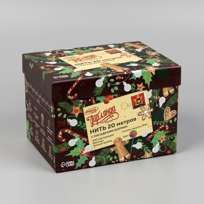Гирлянда «Нить» 20 м с насадками «Шарики 1.5 см», IP44, тёмная нить, 200 LED, свечение мульти (RG/RB), мигание, 220 В