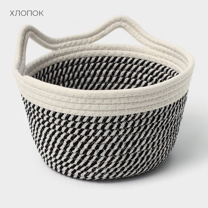 Корзина для хранения плетёная ручной работы LaDо́m «Кэтс», 22×22×12,5 см, цвет чёрно-белый