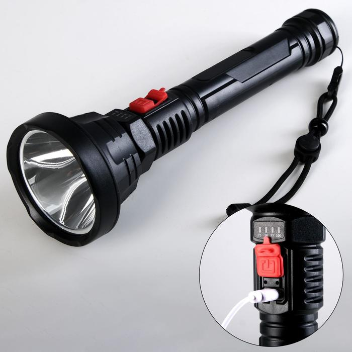 Фонарь ручной аккумуляторный 1.5 Вт, 2000 мАч, 500 лм, дальность 300 м, 3 режима, USB