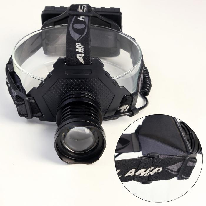 Фонарь налобный аккумуляторный, 10 Вт, 2000 мАч, P50, zoom, индикатор заряда, 3 режима, USB
