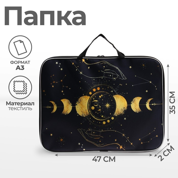 Папка для чертежей и рисунков А3, 470 х 350 х 20 мм, с ручками, текстильная, Calligrata "Космос"