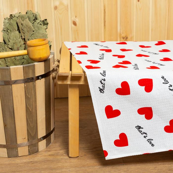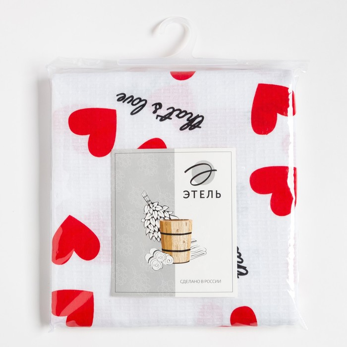 Простыня для бани «Сердечки» 150х180±5 см, 100% хлопок, вафельное полотно, 160 гр/м2