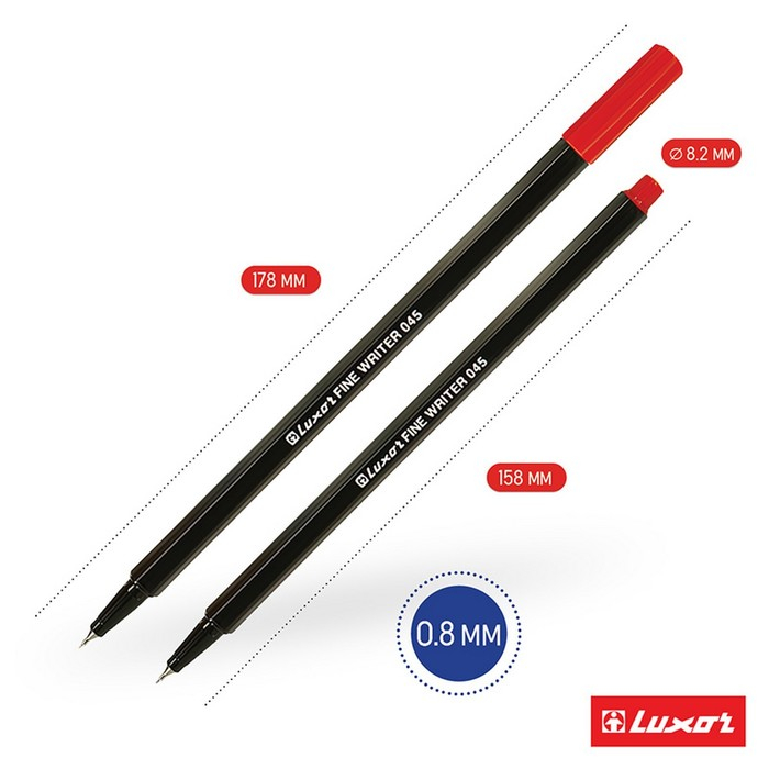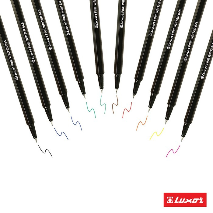 Капиллярные ручки Luxor Fine Writer пишут очень тонкой равномерной линией, оставляя четкий и достаточно контрастный след. Наконечник изготавливается из твёрдого пластика, благодаря чему обеспечивается одинаковая толщина линий при разных наклонах ручки, линия остается тонкой и ровной при длительном письме.