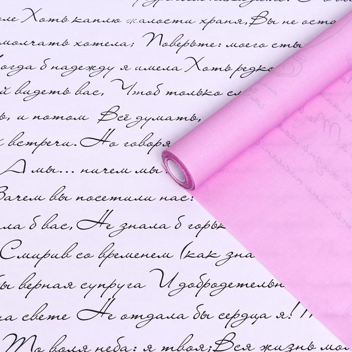 Бумага белый крафт, двусторонняя, розовый, письмо на белом, 0,6 х 10 м