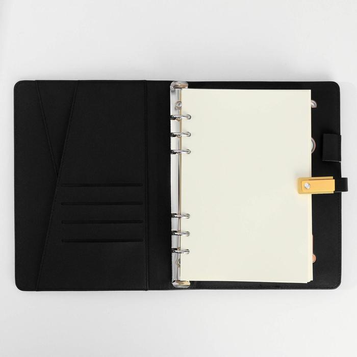Закрывается ежедневник на магнитную ленту-застёжку, на которой помещается флеш-карта на 16 Гб.