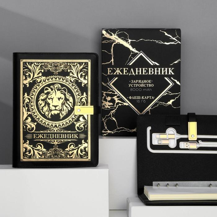 Ежедневник со встроенным зарядным устройством 8000 мАh и флешкой 16 ГБ «Лев», 17,5 х 23,5 см