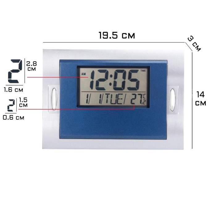 Часы электронные настенные, настольные, с будильником, 19.5 х 14 х 3 см, 2 ААА