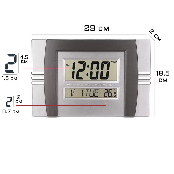 Часы электронные настенные, настольные, с будильником, 2 ААА, 29 х 18.5 х 2 см