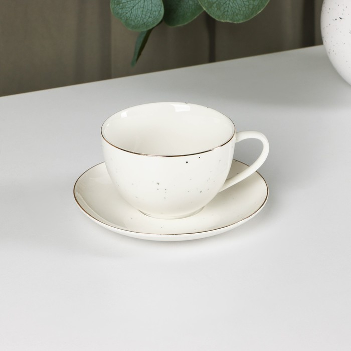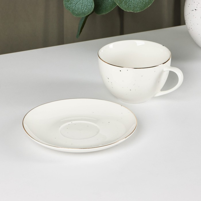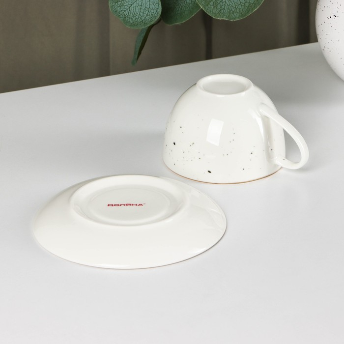 Чайная пара фарфоровая Доляна «Млечный путь», 2 предмета: чашка 220 мл, блюдце d=13,5 см, цвет белый в крапинку