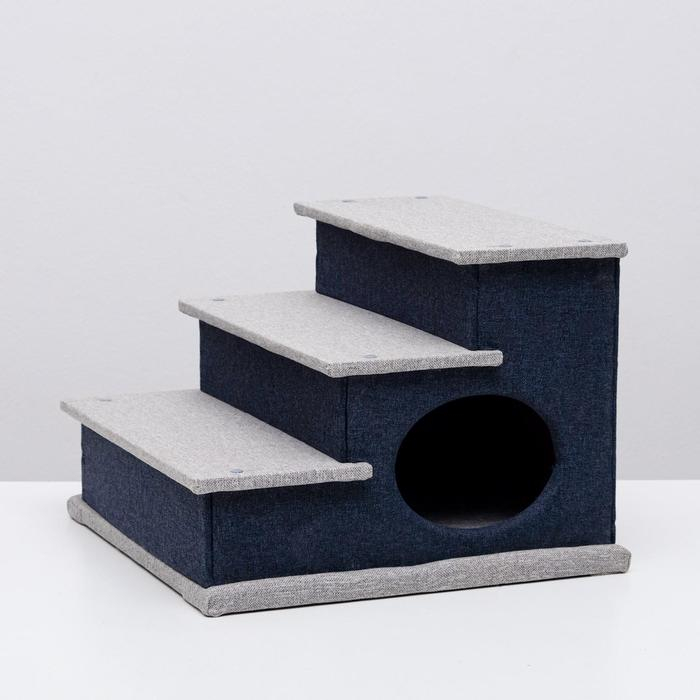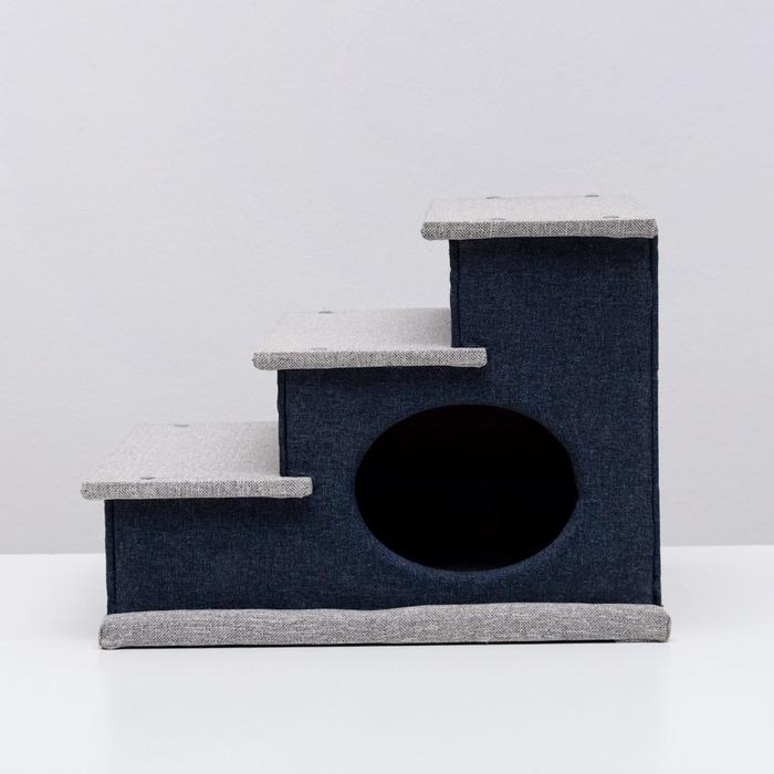 Домик-лесенка для животных "Пижон", рогожка 39 х 38,5 х 32 см, серо-голубой