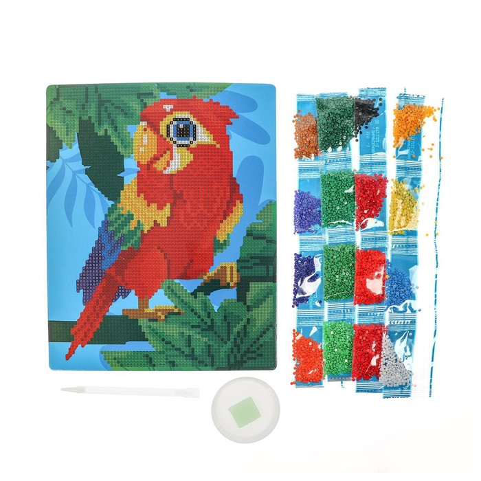 Алмазная мозаика с частичным заполнением для детей «Яркий попугай», 20 х 25 см