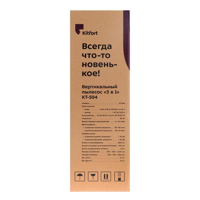 Пылесос Kitfort КТ-594, вертикальный, 90 Вт, 600 мл, серый