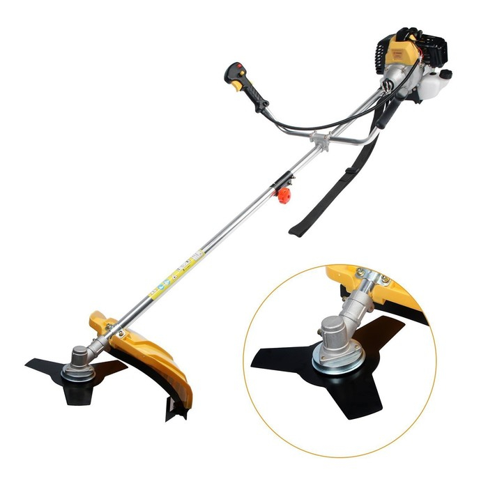 Разборная складная конструкция упрощает транспортировку и хранение инструмента. Специальный защитный кожух обеспечит безопасность оператора от вылетающей травы во время эксплуатации. В комплект входит наплечный ремень, благодаря которому равномерно распределяется нагрузка на мышцы во время работы.