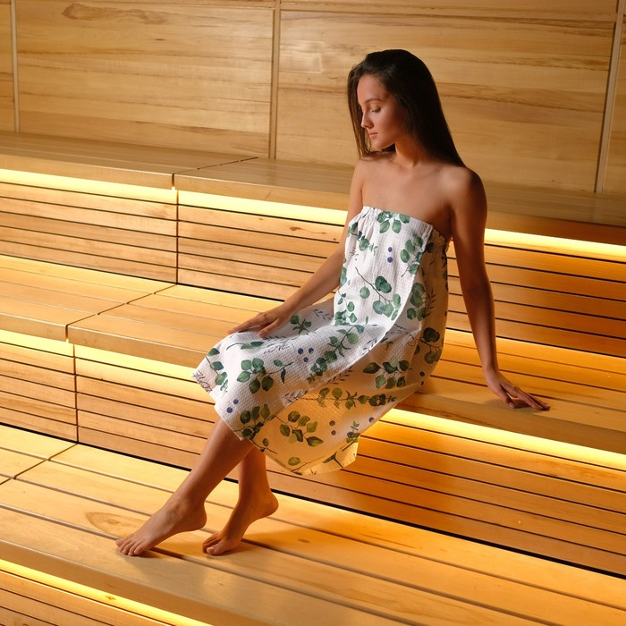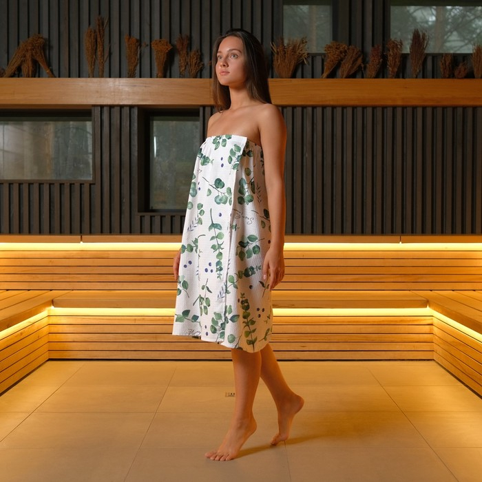 Полотенце для бани «Эвкалипт» женское парео, 80х150±4 см, 100% хлопок, ваф. полотно, 160 гр/м2
