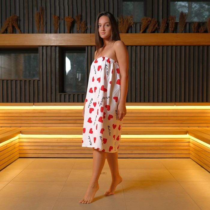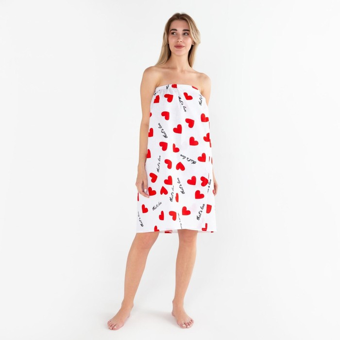 Полотенце для бани «Сердечки» женское парео,80х150±4 см, 100% хлопок, ваф. полотно, 160 гр/м2