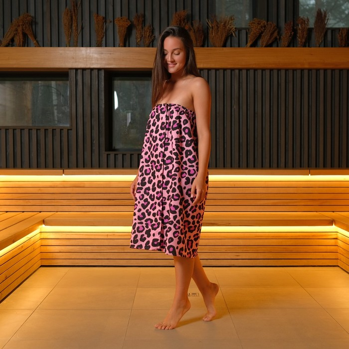 Полотенце для бани Leopard женское парео, 80х150±4 см,хл., ваф. полотно, 160 гр/м2
