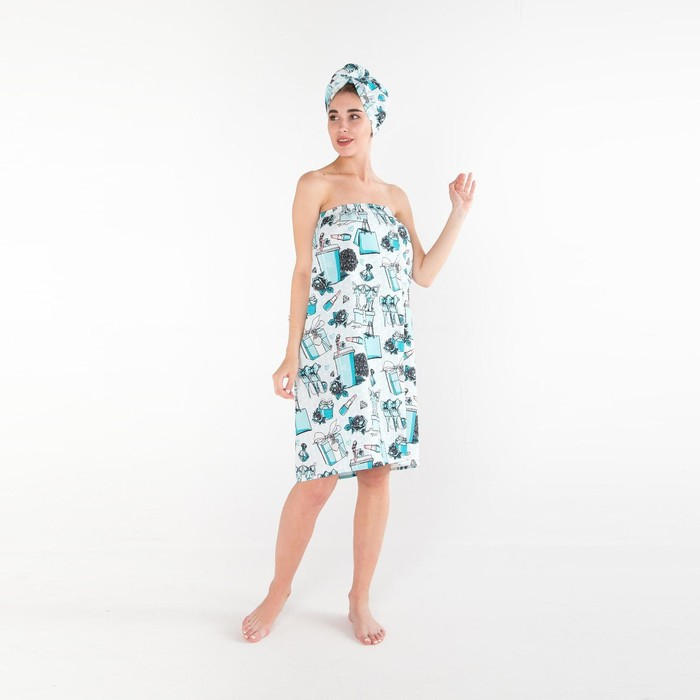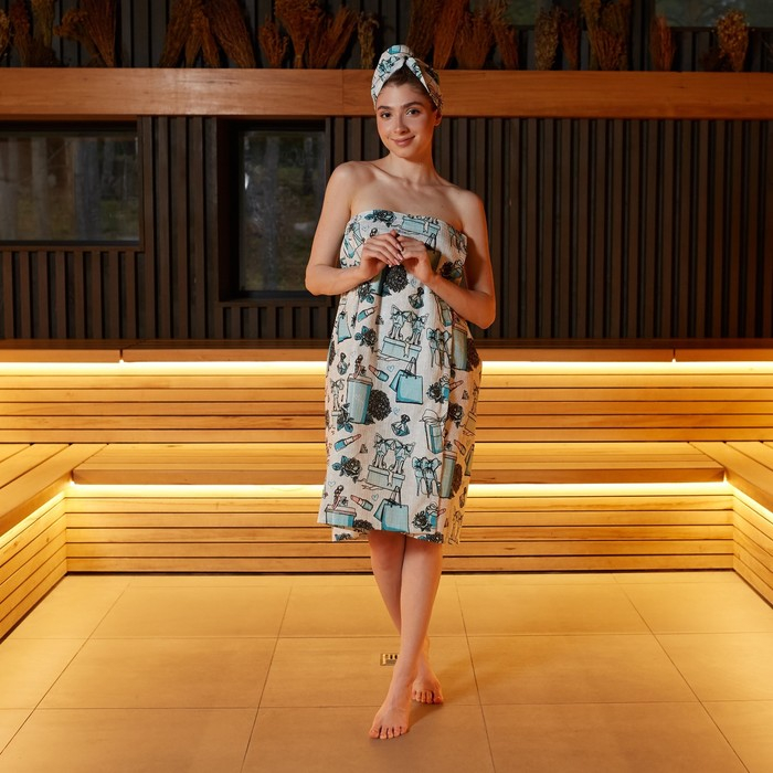 Набор для сауны Этель "Mint mood" парео 80*144 см + чалма, вафля 200г/м2, 100% хл