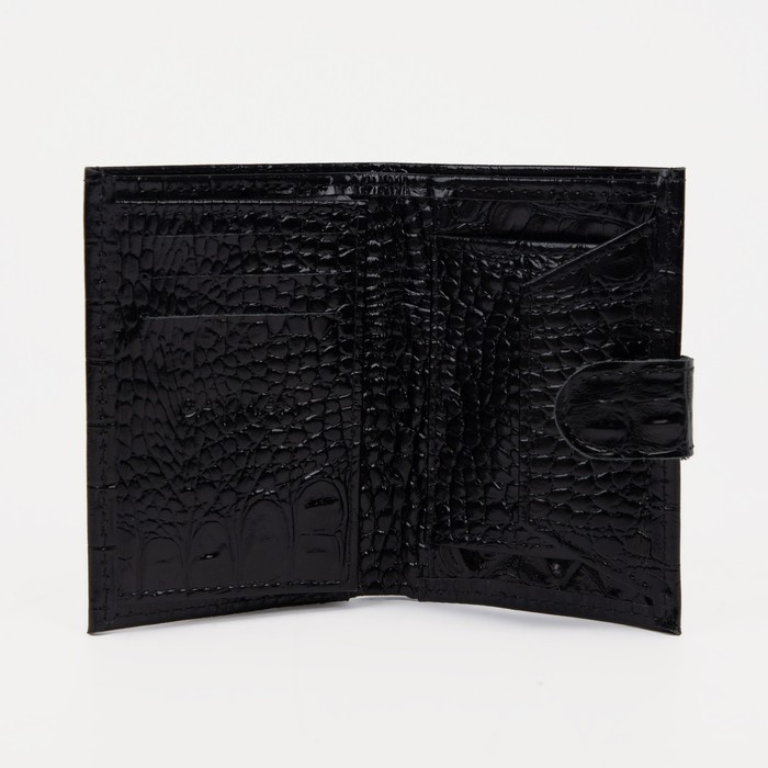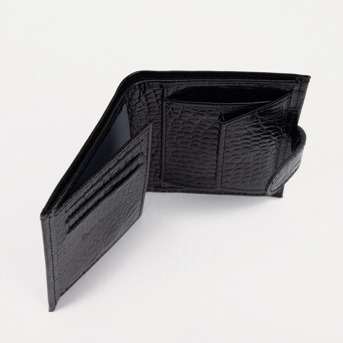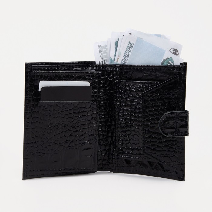 Портмоне мужское на кнопке, для купюр, для карт, для монет, цвет чёрный