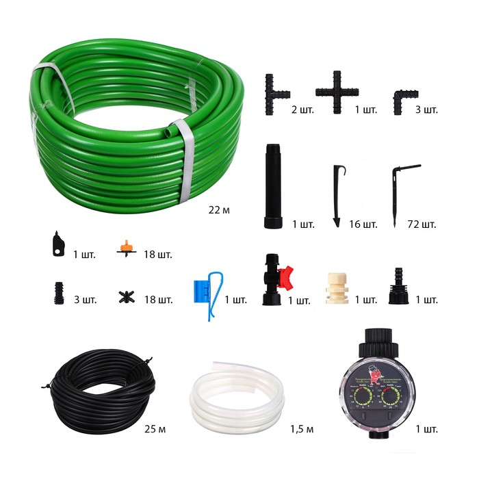 Набор для капельного полива, на 72 растения, с таймером, «Синьор Помидор» PRO
