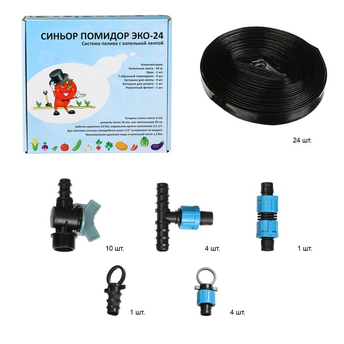 Набор для капельного полива, с капельной лентой 24 м, «Синьор Помидор» ЭКО-24
