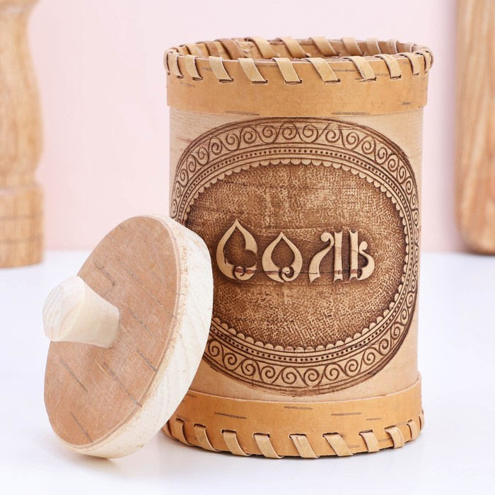 Туес «Соль», 8,5×8,5×12 см, микс, береста
