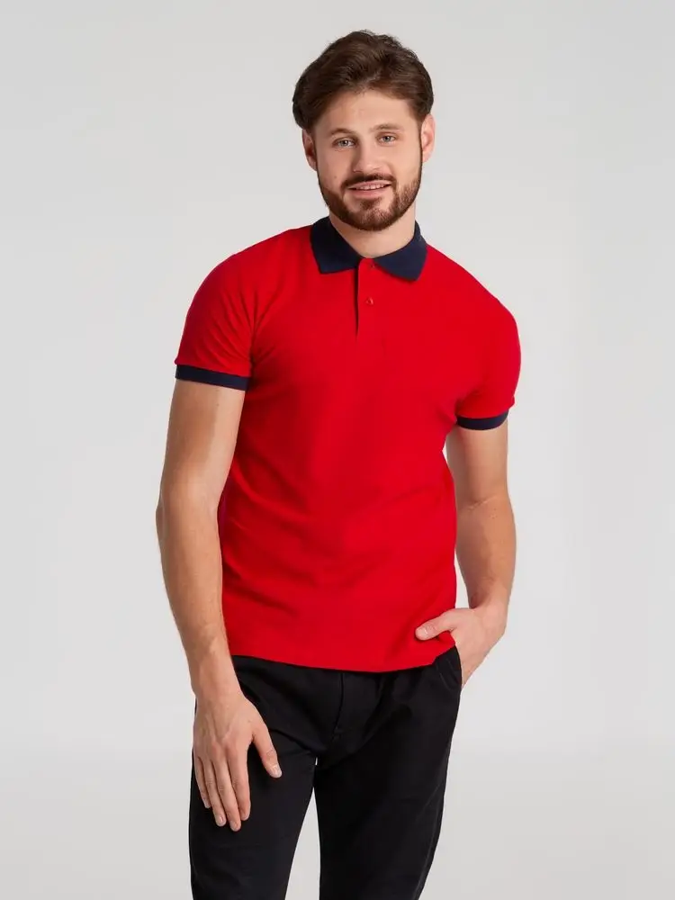 Рубашка поло Prince 190, красная с темно-синим, размер XXL