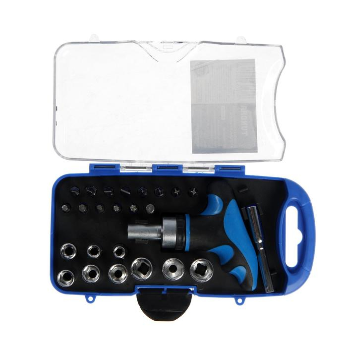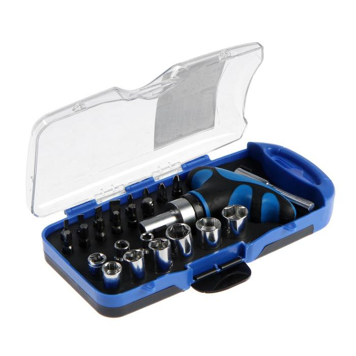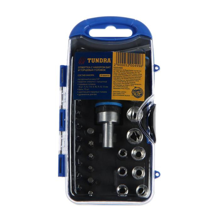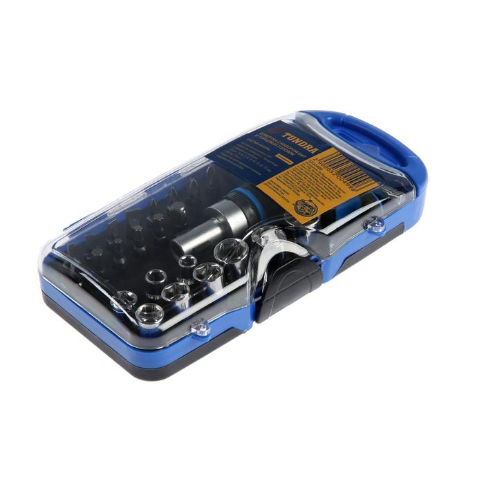 Отвертка с набором бит и торцевых головок ТУНДРА, в пластиковом кейсе, 1/4", 25 предметов
