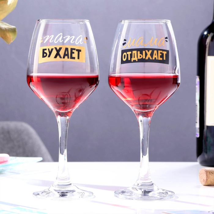 Набор бокалов для вина «Семейный», 350 мл., 2 штуки, деколь