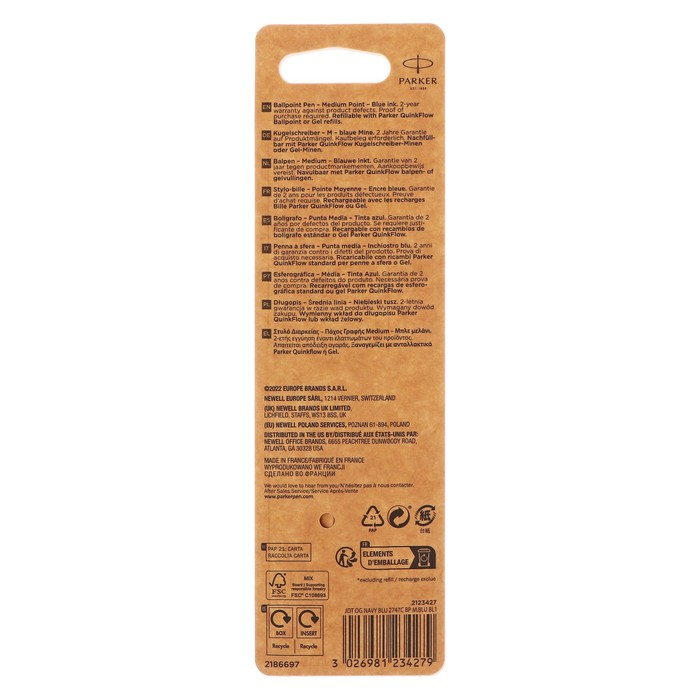 Семейство Jotter, шариковая ручка в пластиковом корпусе темно синего цвета, толщина М, в блистерной упаковке