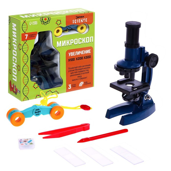 Микроскоп «Юный исследователь», 7 предметов, увеличение x100, x200, x300