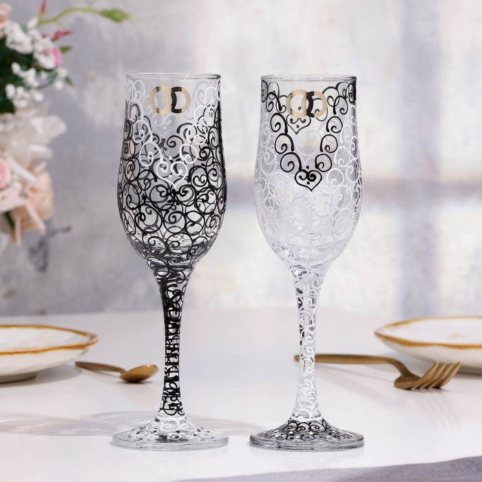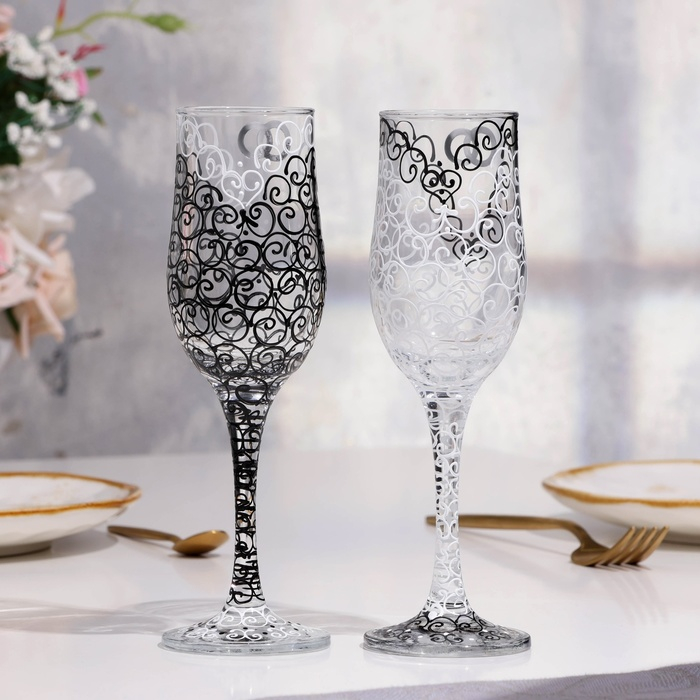 Набор свадебных бокалов "Роскошь", чёрно - белый