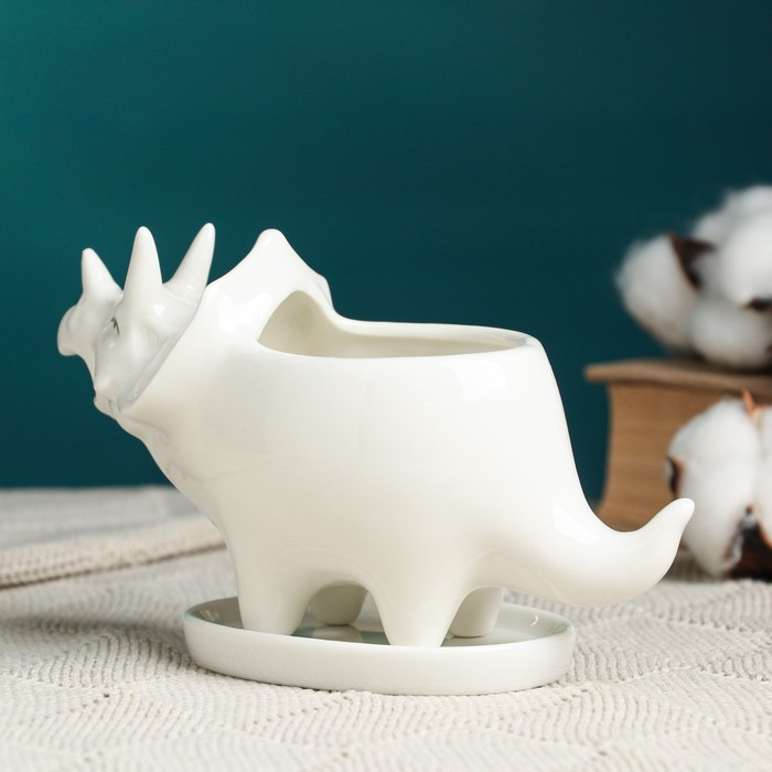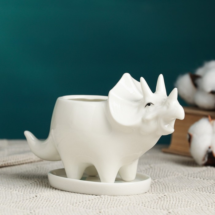 Горшок "Трицератопс" белый, 16х6,5х9см