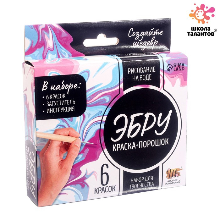 С помощью этого набора вы сможете создать уникальные шедевры в технике эбру — рисование на воде. Это направление, известное ещё со времён Древнего Востока, отличается простотой воплощения и эффектностью результата. Сделанная своими руками картина в технике эбру украсит любой интерьер, а также станет прекрасным эксклюзивным подарком!