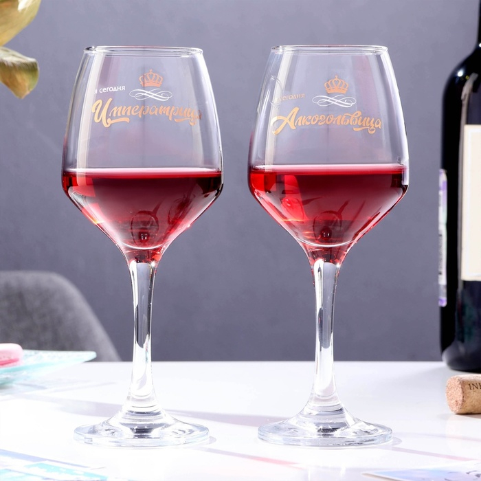 Набор бокалов для вина «Алькогольвица-императрица», 350 мл., 2 штуки, деколь