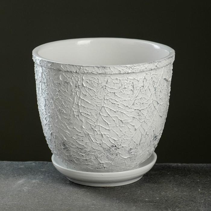 Горшок цветочный "Белое серебро" с поддоном, 8л