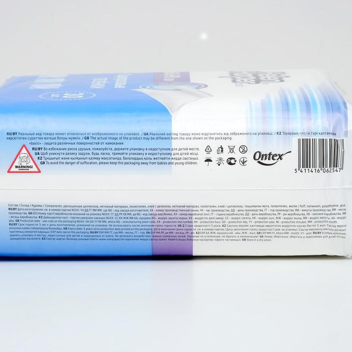 - Мягкий верхний слой выполнен из гидрофильного нетканого материала, впитывающий слой – из целлюлозы, нижний слой – из прочного полиэтилена белого цвета.