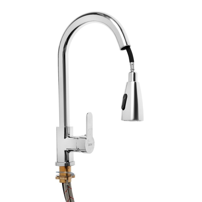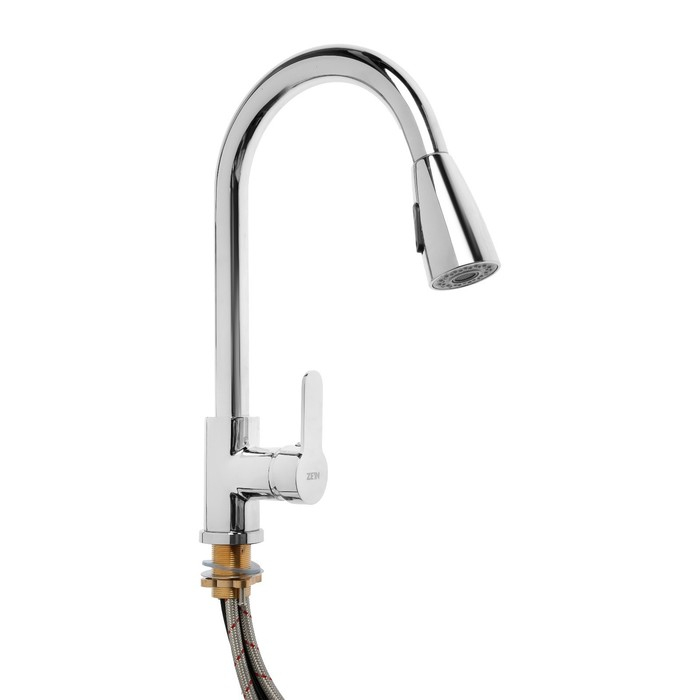 Смеситель для кухни ZEIN Z1300, однорычажный, выдвижной излив, латунь, цвет хром