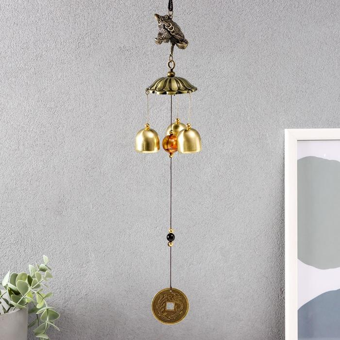Музыка ветра металл "Денежная жаба с монетой" 3 колокольчика 34х5,6х5,6 см