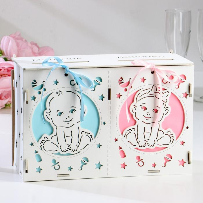 Свадебный банк для сбора денег "На новорожденных. Малыши", розово-голубой, 27,5х12,5х19 см