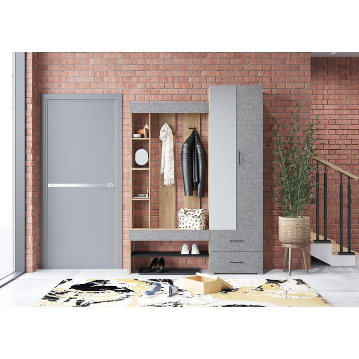 Прихожая Домино - поможет обустроить комфортное и функциональное пространство в прихожей. Она выполнена в современном стиле, а ее сочетание цветов Крафт золотой/Бетон, создает привлекательную эстетику.