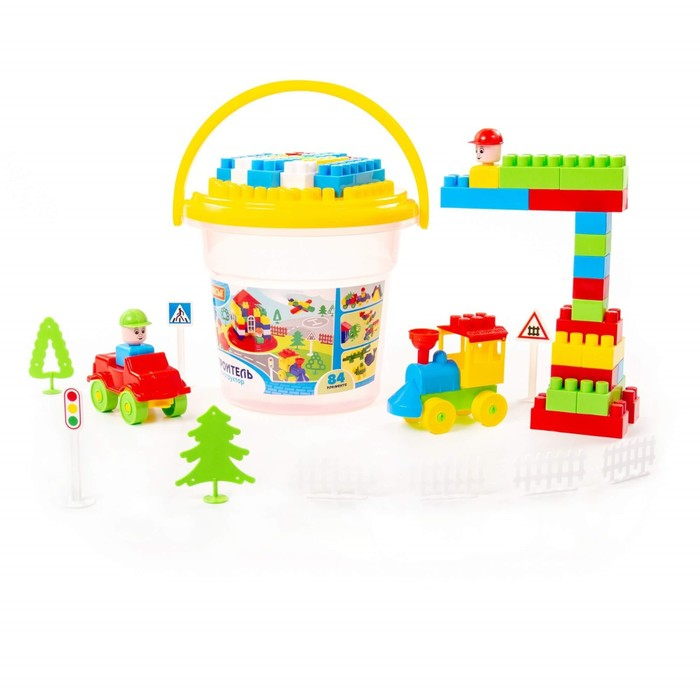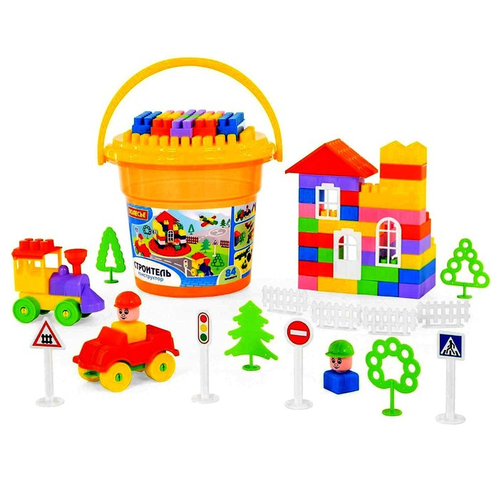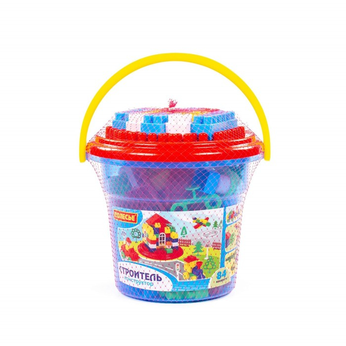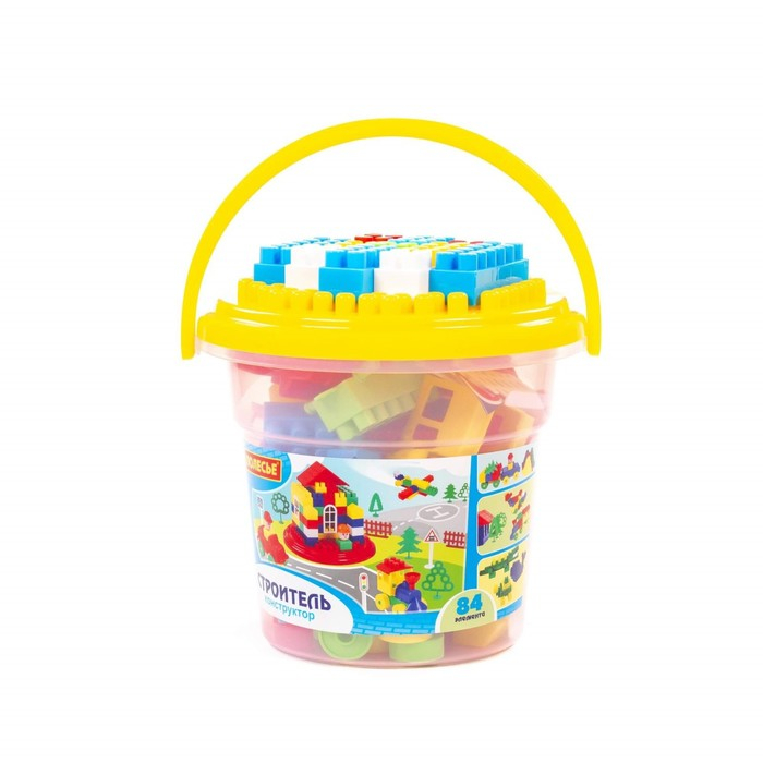 Конструктор «Строитель» 84 эл в ведре с крышкой