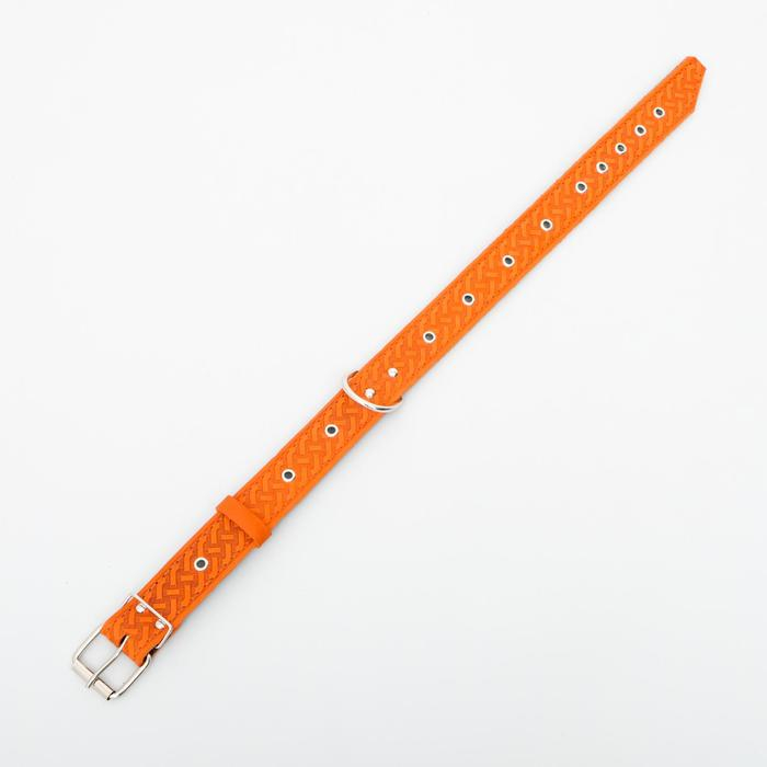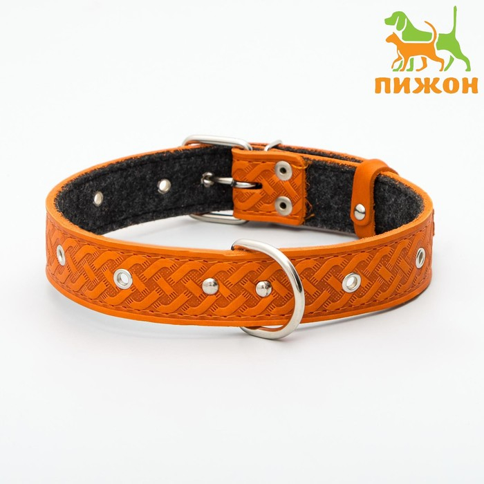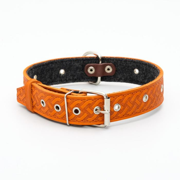 Ошейник кожаный тисненый на фетре, безразмерный, 67 х 3,5 см, ОШ 31-60 см, рыжий