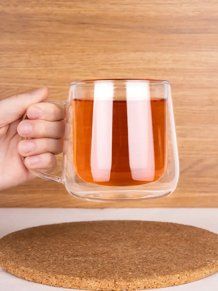 Зауженная сверху чашка Glass First производит впечатление очень аккуратной и совсем небольшой, но при этом точно понравится любителям больших кружек. Благодаря двойным стенкам из тонкого боросиликатного стекла кружка практически ничего не весит, отлично сохраняет тепло и вмещает целых 350 мл любимого напитка. Большая ручка удобно ложится даже в мужскую руку.