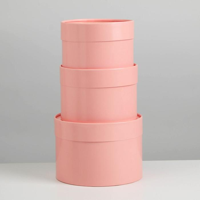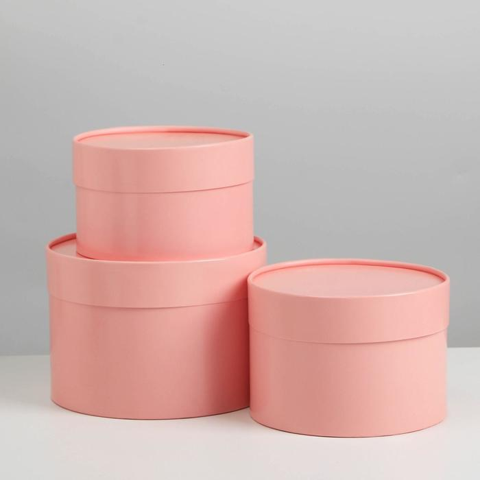 Набор шляпных коробок 3 в 1 розовый, упаковка подарочная, 16 х 10, 14 х 9, 13 х 8,5 см