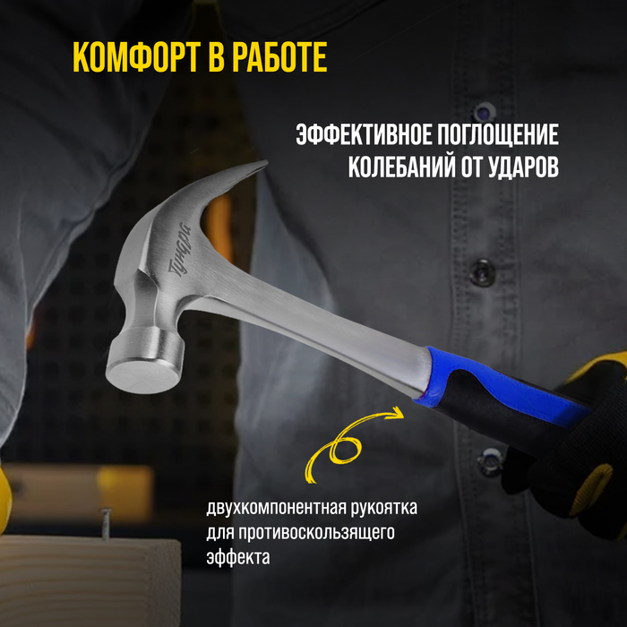 Молоток-гвоздодер ТУНДРА, цельнокованый, 2К рукоятка, 570 г